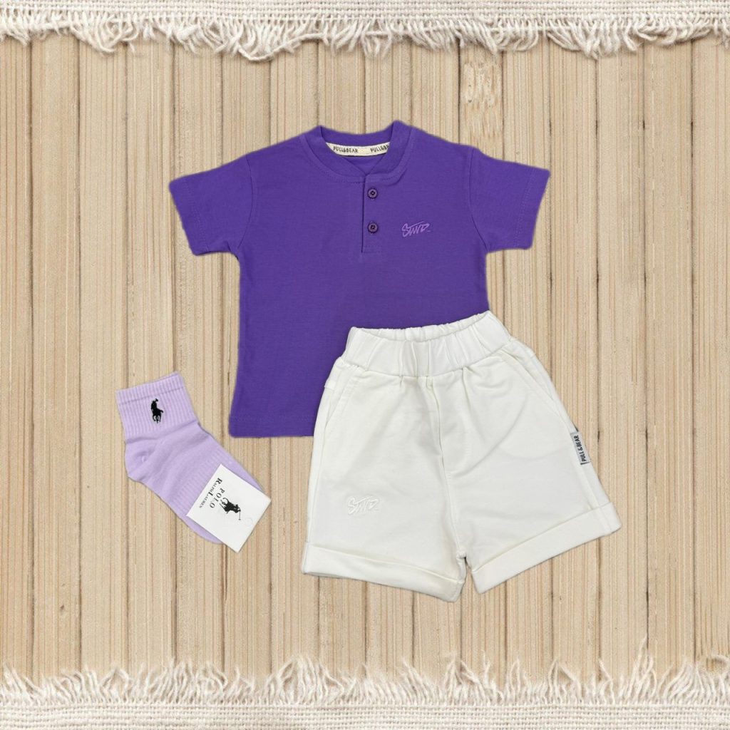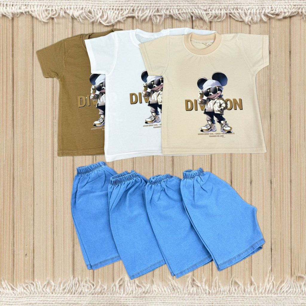 ✨سایزبندی✨ 1 سال : تیشرت : طول 36 عرض 29 شلوارک 26 2 سال : تیشرت : طول 39 عرض 30 شلوارک 28 3 سال : تیشرت : طول 42 عرض 32 شلوارک 31 4 سال : تیشرت : طول 45 عرض 34 شلوارک 34