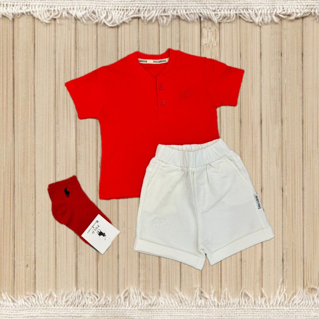 سایزبندی 1 سال : تیشرت : طول 36 عرض 29 شلوارک 26 2 سال : تیشرت : طول 39 عرض 30 شلوارک 28 3 سال : تیشرت : طول 42 عرض 32 شلوارک 31 4 سال : تیشرت : طول 45 عرض 34 شلوارک 34