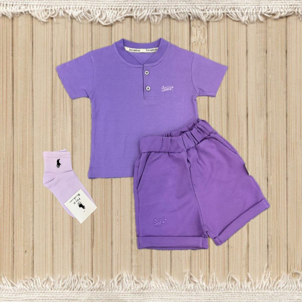 ✨سایزبندی ✨ 1 سال : تیشرت : طول  36  عرض  29     شلوارک  26 2 سال : تیشرت : طول  39  عرض 30   شلوارک  28 3 سال : تیشرت : طول  42  عرض 32  شلوارک  31 4 سال : تیشرت : طول  45  عرض  34  شلوارک  34