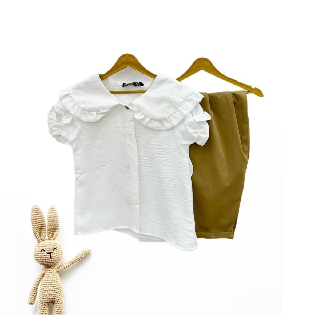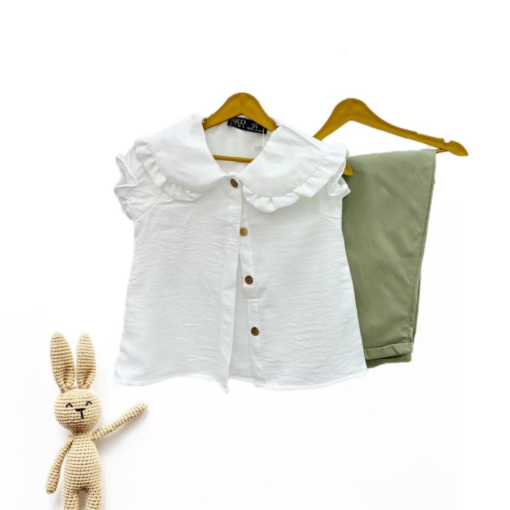 سایزبندی : 4 سال : شومیز : عرض 32  طول 39    شلوار   59 5 سال : شومیز : عرض 33  طول 40   شلوار  62 6 سال : شومیز : عرض 34  طول 41   شلوار  65 7 سال : شومیز : عرض 35  طول 42   شلوار  68 8 سال : شومیز : عرض 36 طول 43  شلوار  71 9 سال : شومیز : عرض 37  طول 44   شلوار 74