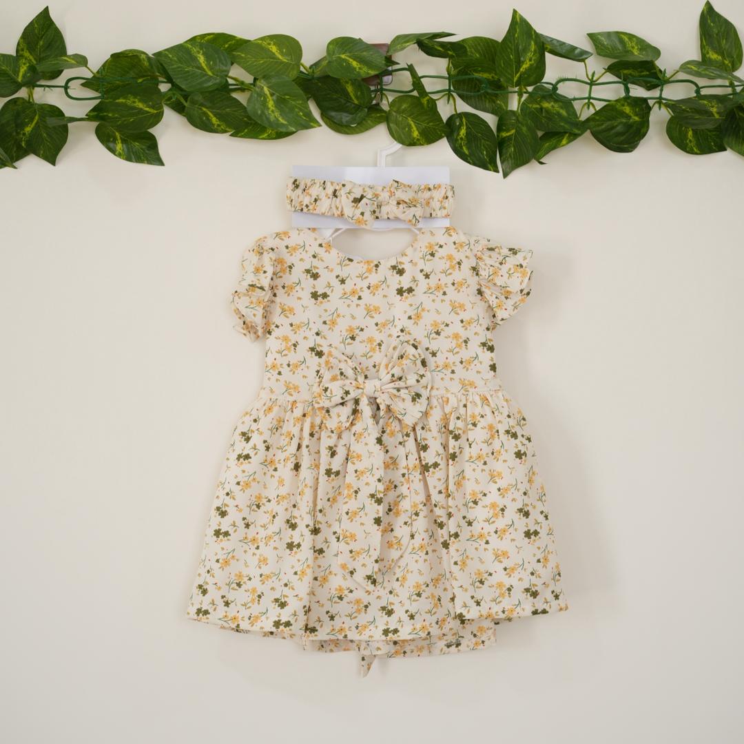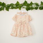 سارافون دخترانه با طرح گلدار و پیشانی بند یقه چیندار و انتخابی دلنشین و سبک برای روزهای گرم بهاری و تابستانی. این لباس با طراحی کلاسیک و پاپیون جلویی، زیبایی و لطافت را همزمان به استایل کودک شما میآورد. پارچه نخی و خنک آن باعث راحتی بیشتر در طول روز میشود. مناسب برای مهمانی، تولد، گردش و حتی عکسهای یادگاری!