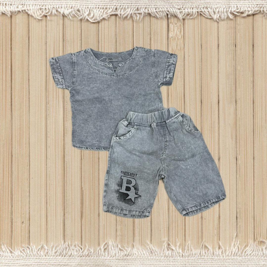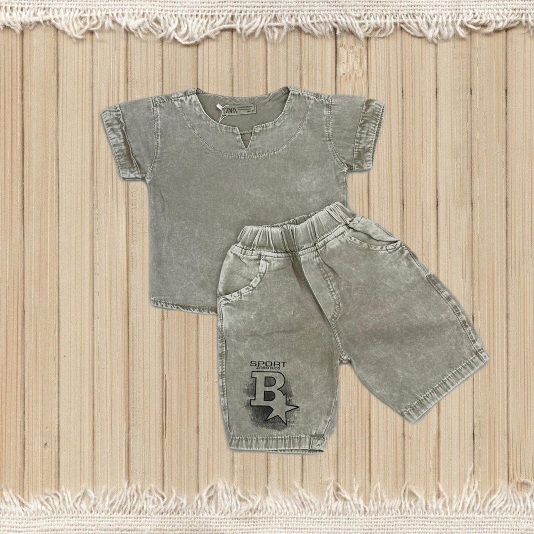 این ست پسرانهی شیک با ظاهر جینشور و جنس بسیار نرم و سبک، انتخابی خاص برای روزهای تابستانی است. تیشرت یقهدار با برش ساده و مدرن در کنار شلوارک راحت با کمر کشی و طرح اسپرت چاپی، ظاهری امروزی و استایلی جذاب به کودک شما میبخشد. رنگ طوسی جیننما، قابلیت ست شدن با انواع کفش و اکسسوری را دارد.