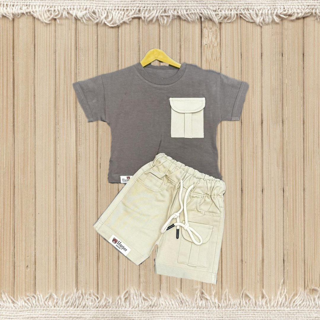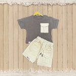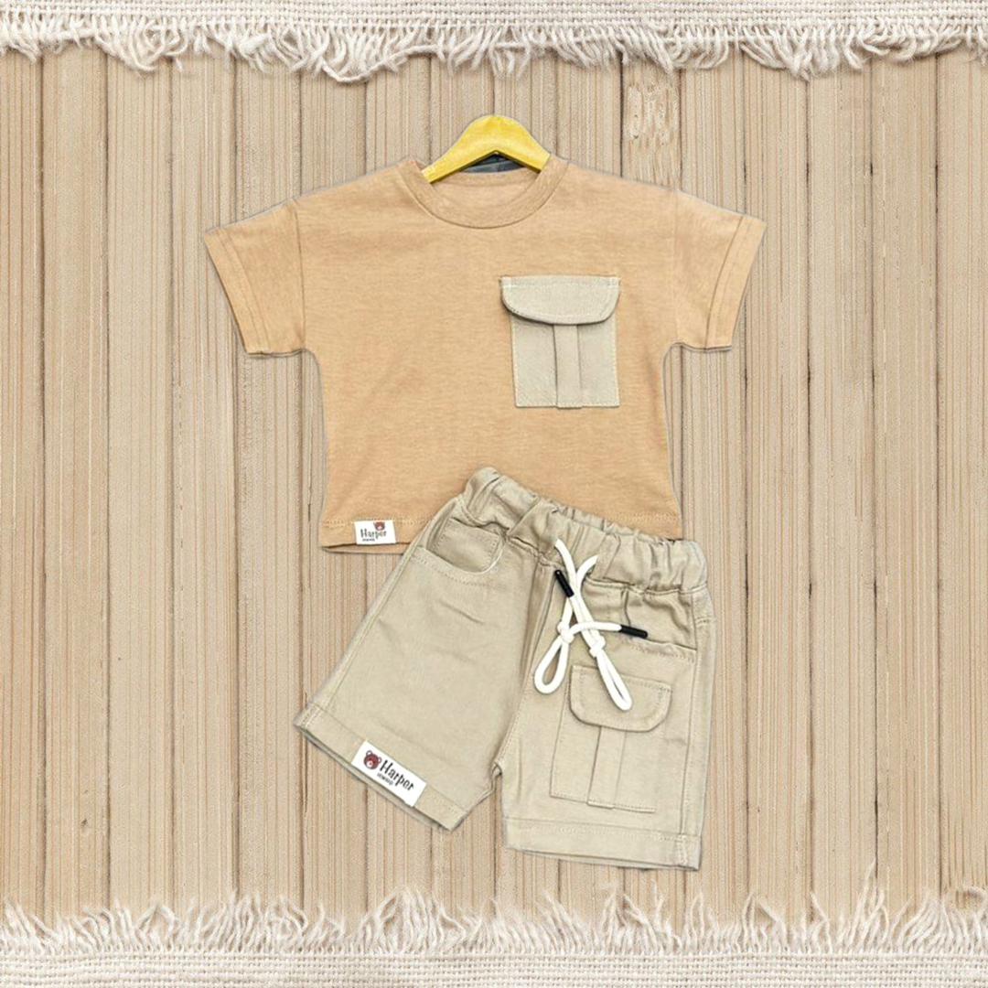 ترکیبی از راحتی و استایل! این ست جذاب شامل تیشرت نارنجی با جیب طراحیشده و شلوارک کرم رنگ با کمربند کشی و جیب کاربردی است.