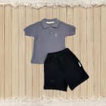 ست پولو پسرانه مدل کلاسیک خاکستری سفید+جوراب