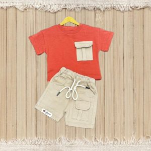 پولوشرت قرمز با یقه کلاسیک و دو دکمه، در کنار شورت سفید مینیمال با دوخت تمیز و کمر کشی راحت، ترکیبی ایدهآل برای استایلهای روزمره و رسمی کودکانه است.